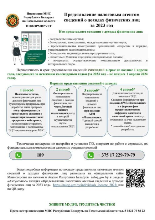 Экономика и финансы 06.12.2023 ПРЕДСТАВЛЕНИЕ НАЛОГОВЫМ АГЕНТАМ СВЕДЕНИЙ О ДОХОДАХ ФИЗИЧЕСКИХ ЛИЦ ЗА 2023 ГОД Опубликовал: Лоевский край
