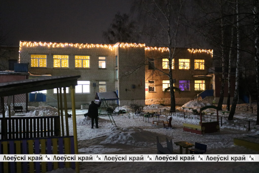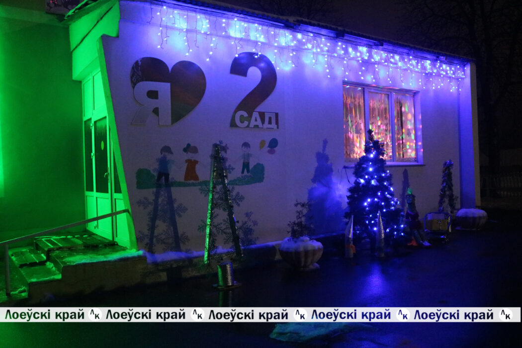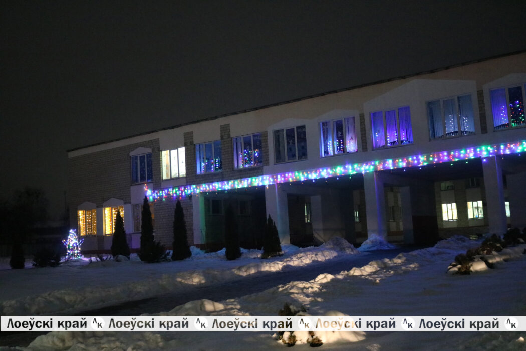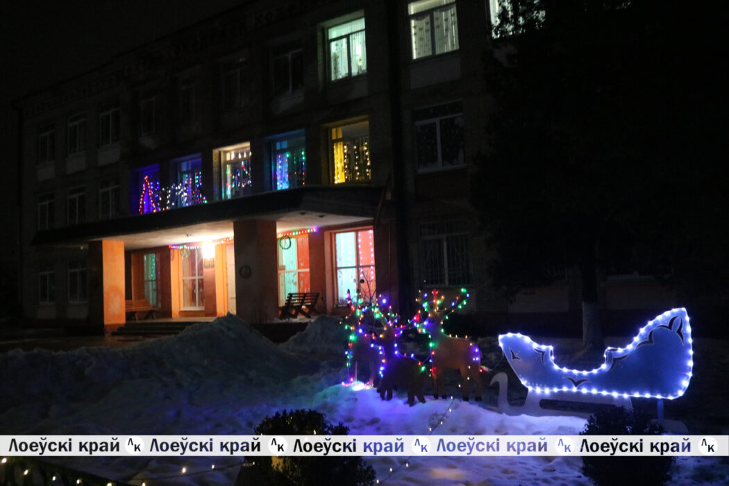 Магией новогодних украшений и огней манят учреждения горпоселка. Особенно постарались педагогический колледж школы, детские сады. Входные группы зданий пестрят разноцветными гирляндами, завораживающими волшебством света. Своей светящейся композицией — санями с оленями, удивляет районная гимназия. Яркой иллюминацией фасада здания выделяется колледж. Вся эта сказочная феерия света создает праздничное настроение не только для самих воспитанников учреждений, но и жителей Лоева.