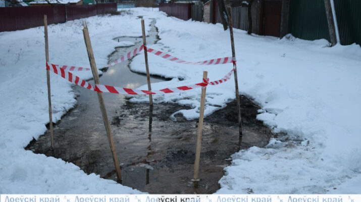 «Лоевская Венеция» — только так можно было описать ситуацию, происходящую на ул. Козлова горпоселка, По улице не то что пройти, даже проехать проблематично —