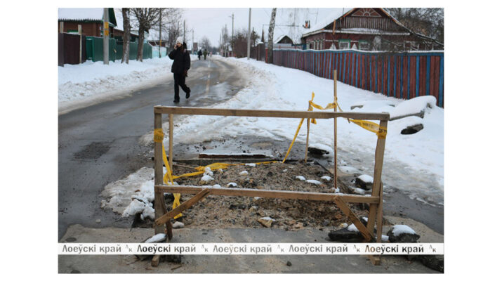 Очередной порыв встретился корреспондентам «ЛК» в переулке улицы Гагарина, что райцентре. Здесь по среди дороги образовалась огромная яма, занимающая всю пешеходную часть, препятствуя расчистке