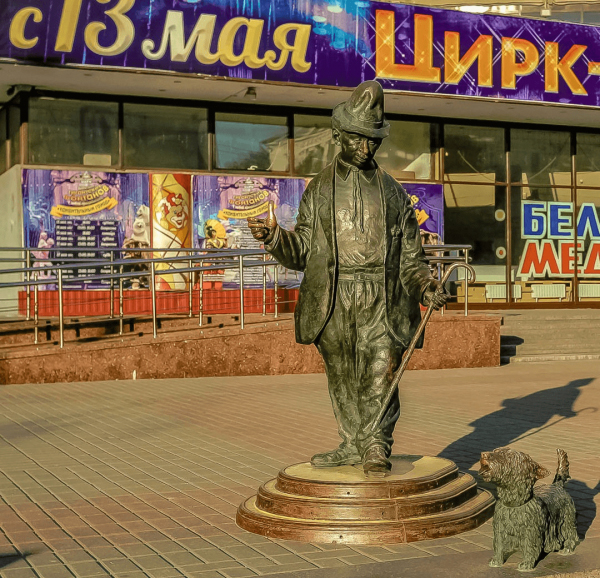 Памятник легендарному клоуну Карандашу был открыт в 2006 году в Гомеле. Скульптурно-жанровая композиция установлена на площадке перед Гомельским государственным цирком. Этот персонаж предстаёт перед жителями и гостями областного центра в традиционном цирковом костюме, шляпе-котелке и на пару со своей неизменной спутницей — собачкой Кляксой. Высота бронзовой фигуры соответствует росту артиста — 1 м 57 см.