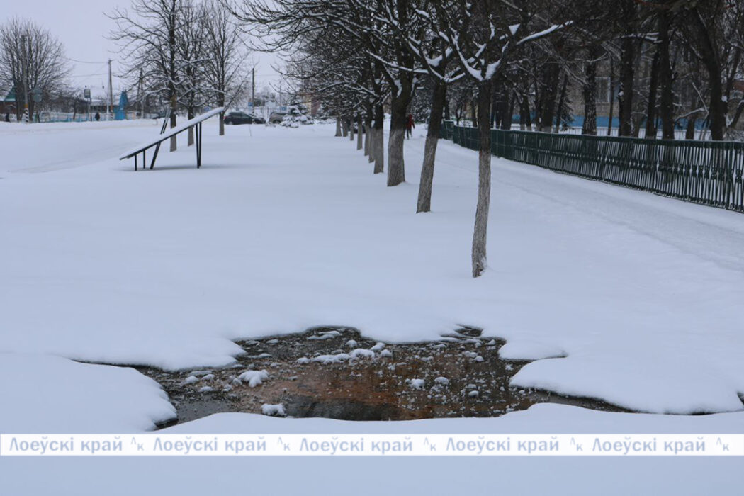 Очередной порыв корреспонденты «ЛК» зафиксировали на камеру по улице Шевелева напротив учебного корпуса педколледжа. Хорошо, что место течи воды находится на газоне, а не на тротуаре, где каждый день ходят пешеходы. Иначе при такой низкой температуре воздуха здесь бы был настоящий каток. Надеемся, Речицкий водоканал на нашу публикацию отреагирует оперативно.