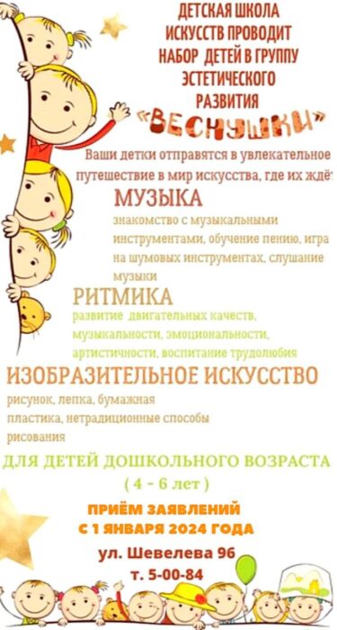 Инфографика Образование/Спорт 10.01.202411.01.2024 ДЕТСКАЯ ШКОЛА ИСКУССТВ Г.П.ЛОЕВ ПРОВОДИТ НАБОР ДЕТЕЙ В ГРУППУ ЭСТЕТИЧЕСКОГО РАЗВИТИЯ Опубликовал: Лоевский край