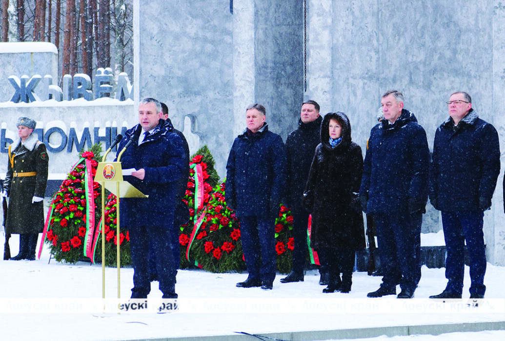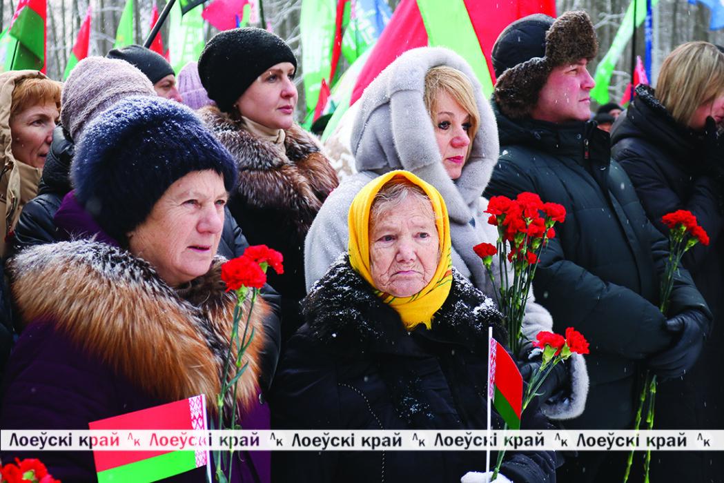 14 января исполнилось 80 лет со дня страшной трагедии. Более тысячи человек собрались в этот скорбный день здесь на митинг-реквием. Участие в нем приняли председатель Гомельского облисполкома Иван Крупко, управляющий делами Президента Юрий Назаров, генеральный прокурор Беларуси Андрей Швед, помощник Президента — инспектор по Гомельской области Юрий Горлов, заместитель премьер-министра Игорь Петришенко, министр образования Андрей Иванец, председатель областного Совета депутатов Екатерина Зенкевич и другие почетные гости: представители депутатского корпуса, духовенства, общественных организаций и объединений, делегации из всех регионов Гомельщины.