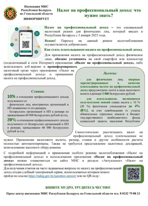 Экономика и финансы 22.01.2024 НАЛОГ НА ПРОФЕССИОНАЛЬНЫЙ ДОХОД: ЧТО НУЖНО ЗНАТЬ? Опубликовал: Лоевский край
