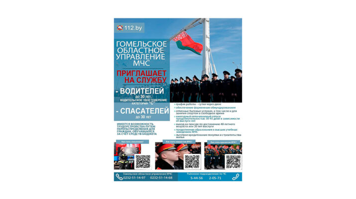 ГОМЕЛЬСКОЕ ОБЛАСТНОЕ УПРАВЛЕНИЕ МЧС ПРИГЛАШАЕТ НА СЛУЖБУ