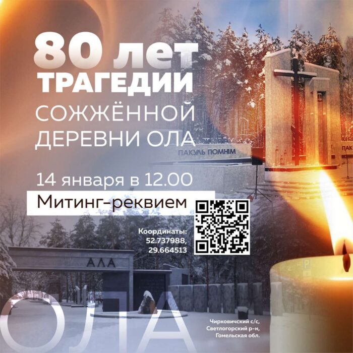 Инфографика Общество 10.01.202411.01.2024 14 ЯНВАРЯ СОСТОИТСЯ МИТИНГ-РЕКВИЕМ, ПОСВЯЩЕННЫЙ 80-ЛЕТИЮ ТРАГЕДИИ СОЖЖЕННОЙ ДЕРЕВНИ ОЛА Опубликовал: Лоевский край 1
