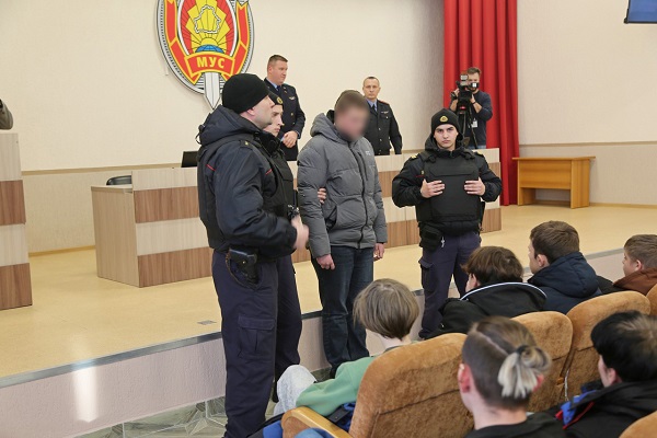 В ГОМЕЛЕ ПЕРЕД УЧАЩИМИСЯ ПРОВЕЛИ ПОКАЗАТЕЛЬНЫЙ АРЕСТ НЕСОВЕРШЕННОЛЕТНЕГО И ДВУХ ВЗРОСЛЫХ
