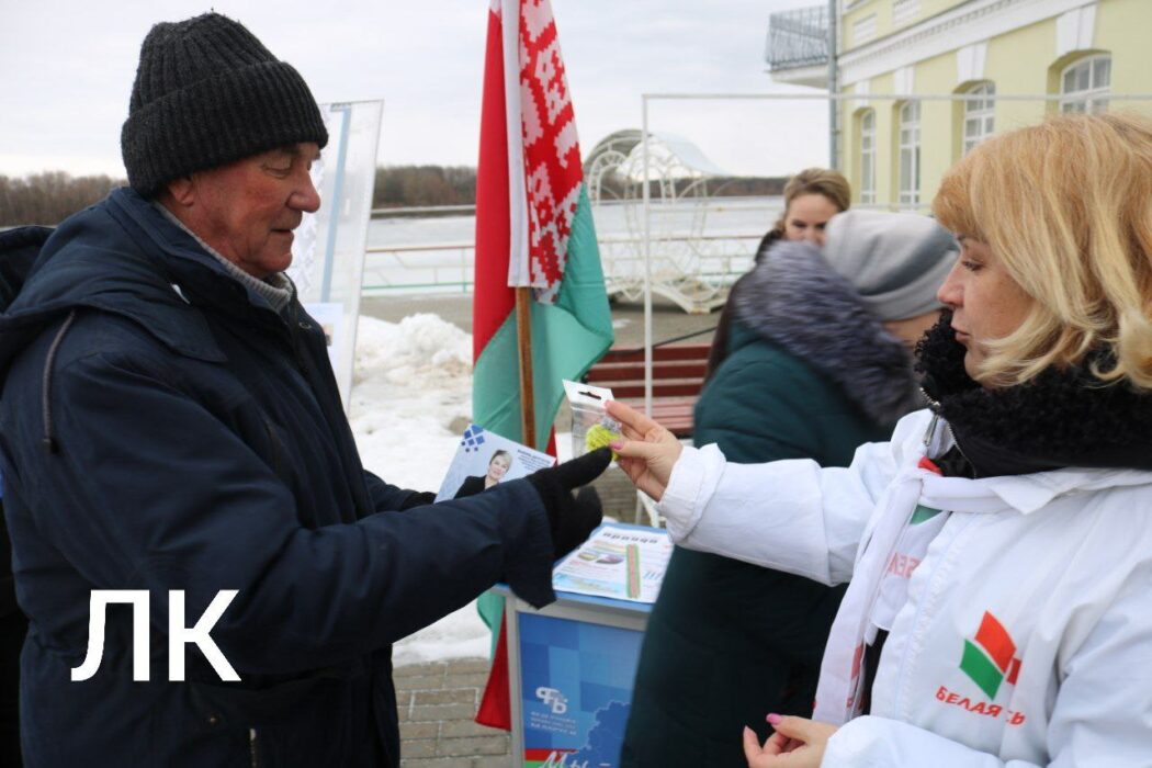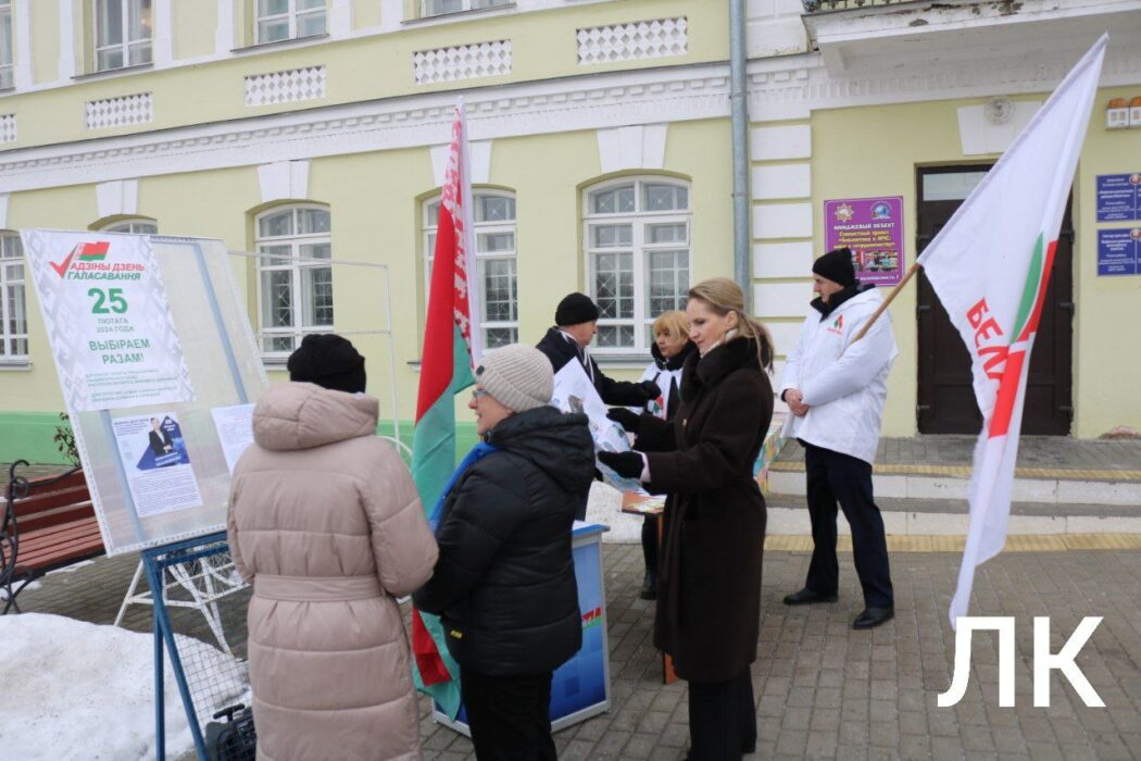 Национальная символика и хиты белорусской эстрады привлекали внимание прохожих. Оказывается, здесь развернулся агитационный пикет в поддержку кандидатов в депутаты в областной Совет депутатов и в Палату представителей Национального Собрания Республики Беларусь.
