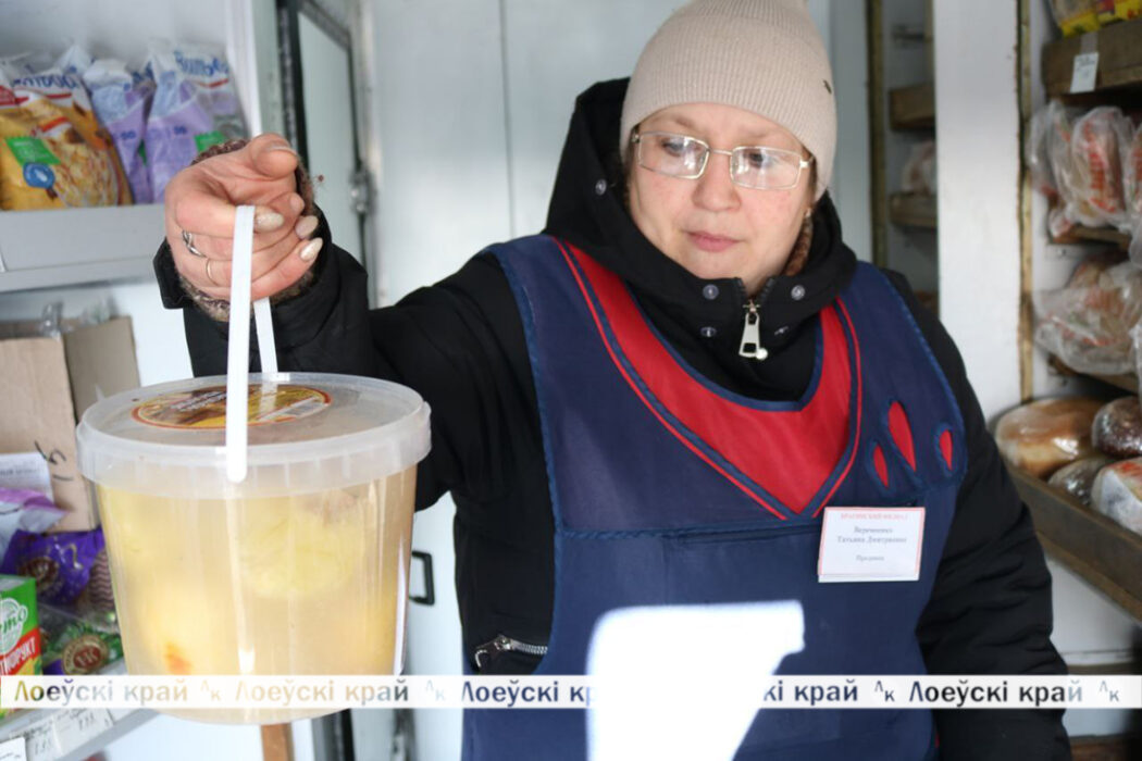 — В автолавке закупаюсь постоянно. Чаще беру самые простые продукты хлеб, молоко, сахар, соль, макароны, крупы и колбасы. Самое необходимое всегда можно купить, выбор достаточный. Ну а если нам с мужем захочется более заморских лакомств, просим детей привезти из Лоева, — рассказывает с улыбкой Мария Чучваго.