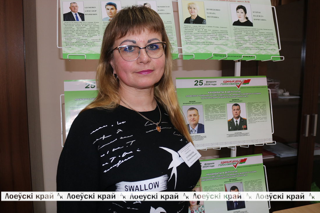 — До Единого дня голосования осталось несколько дней. Но хочу отметить, что и в период досрочного голосования люди очень активно выполняют свой гражданский долг. Многие идут целенаправленно целыми семьями. Это говорит о том, что людям не безразлично будущее нашего государства. Я дежурю в качестве наблюдателя на участке №1, который расположен в городском центре культуры г.п. Лоева. Обстановка здесь спокойная и доброжелательная, соблюдаются условия безопасности, за порядком следят представители правоохранительных органов, избирательный процесс проходит в соответствии с законодательством. Дисциплинированно, четко, понятно. Информационные материалы представлены в полном объеме.