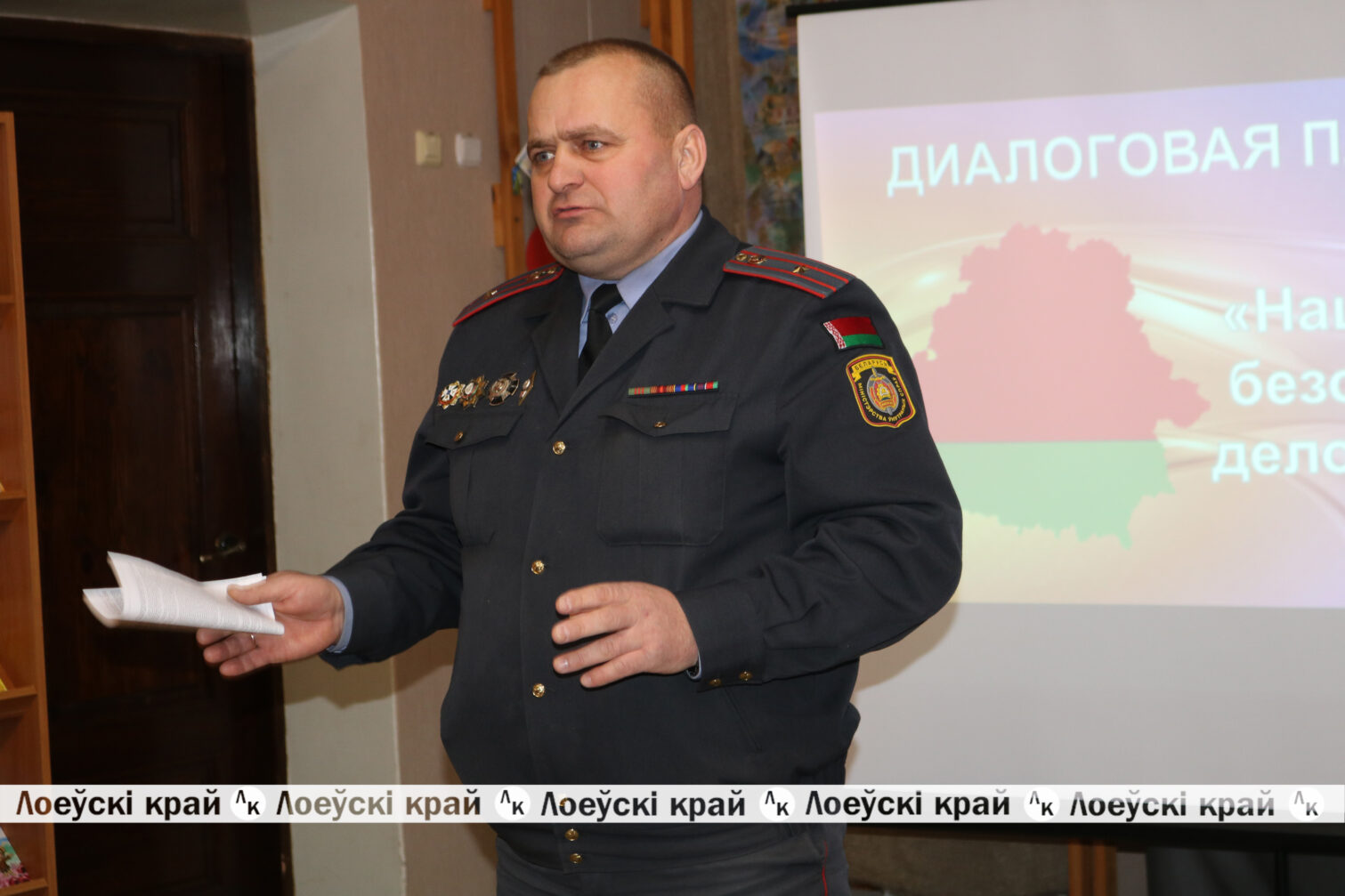 Об обстановке, складывающейся у нас в приграничье и мерах, которые принимаются государством и руководством Государственного пограничного комитета по охране рубежей Родины более подробно остановился заместитель коменданта по идеологической работе пограничной комендатуры «Лоев» Александр Кондрацкий. Он рассказал о провокационных действиях с территории сопредельного государства, нарушителях пограничного законодательства, а также напомнил о необходимости более тесного сотрудничества населения с силовыми структурами и местными органами власти по вопросу информирования при появлении на Лоевщине незнакомых лиц.
