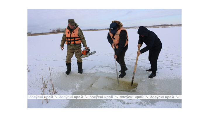 Для предотвращения гибели рыбы в зимний период специалисты Лоевской районной инспекции природных ресурсов и охраны окружающей среды совместно с работниками спасательной станции ОСВОД и