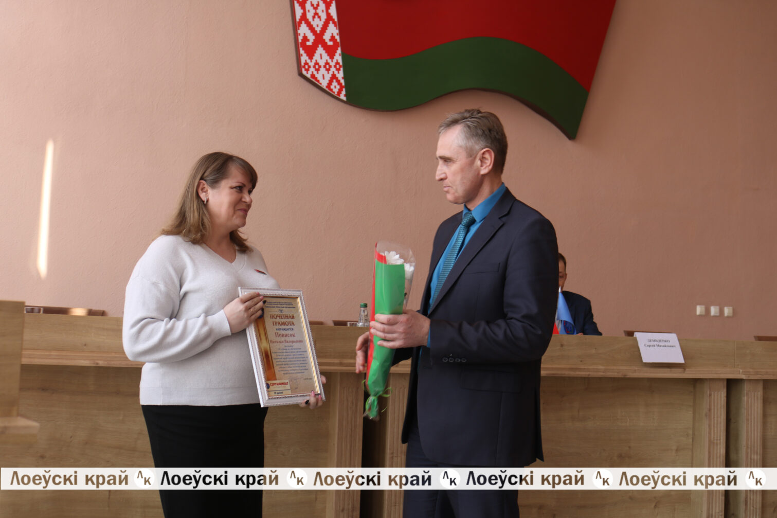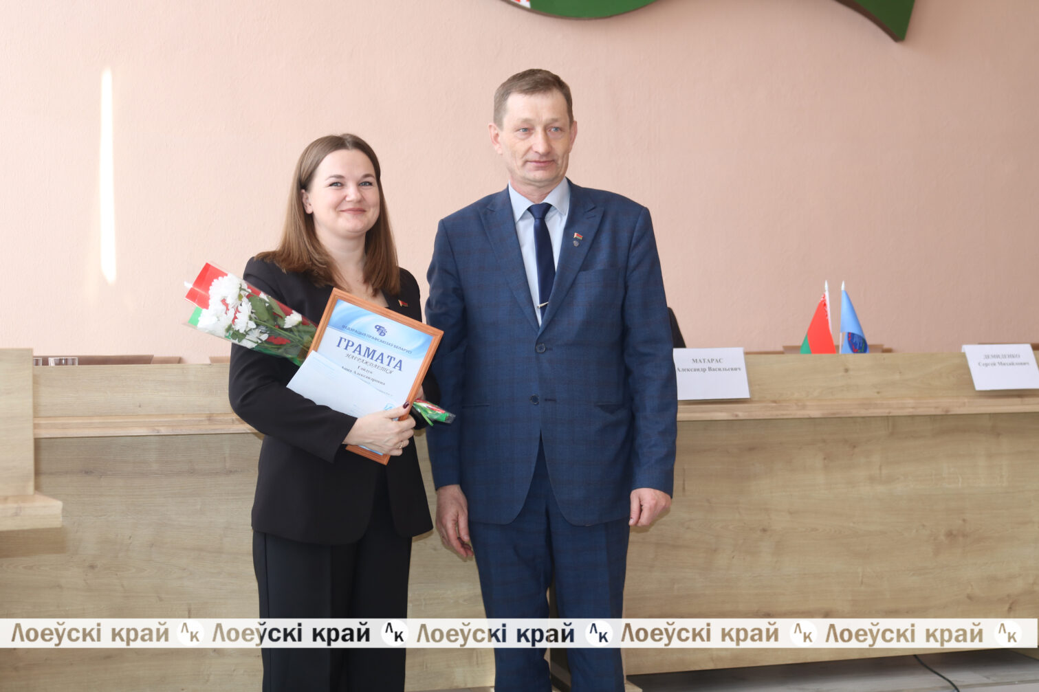 В торжественной обстановке Александр Васильевич выразил благодарность бывшему лидеру Инне Леонидовне за весомый вклад в укрепление профсоюзного движения и совместную плодотворную работу, а также поздравил Анну Александровну с избранием на должность председателя РО и вручил ей удостоверение профсоюзного лидера.
