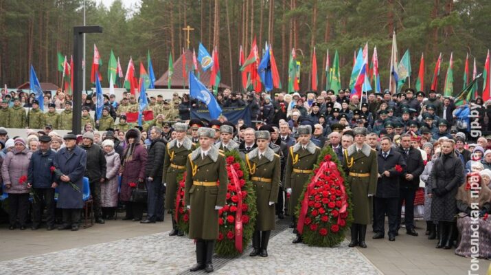 У мемориального комплекса в Калинковичском районе собрались представители власти, общественных организаций, трудовых коллективов, молодёжь, бывшие узники. В митинге приняли участие председатель облисполкома Иван Крупко,