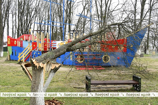 Во вторник вечером Лоевщину накрыла непогода. В результате разгулявшейся стихии были повреждены кровли частных домовладений, ограждения, повалены деревья, вывернуты дорожные знаки, некоторые населенные пункты остались без электричества. К аварийно-восстановительным работам службы преступили оперативно.