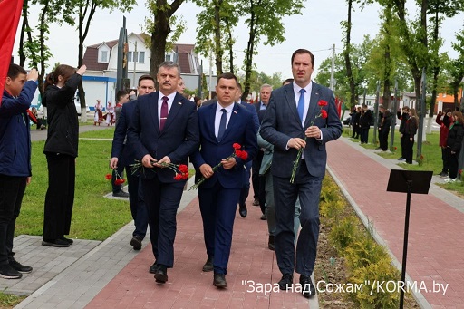 Гости приняли участие в церемонии возложения к мемориалу на площади Свободы в г.п. Корма, а также посетили ряд спортивных объектов: ознакомились с работой физкультурно-оздоровительного комплекса, оценили возможности нового спортивного комплекса со стадионом и административно-бытовым комплексом для любителей здорового образа жизни.