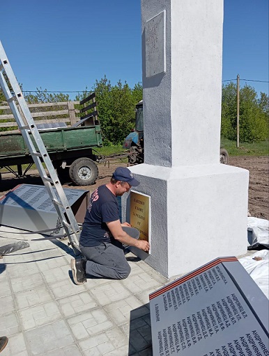 С наступлением тепла работа на объекте закипела. Дружно, слаженно, с оптимизмом. Среди тех, кто внёс личный вклад в увековечение памяти земляков ИП Виталй Бизюк. Мужчина выделил бордюры для благоустройства территории памятника и со своей командой помог уложить тротуарную плитку. Работники Приднепровского лесничества спилили аварийные деревья поблизости. Водители и трактористы райжилкомхоза и КСУП «Бывальки», доставили землю для подсыпки клумб и выравнивания дорожек, а работники ДРСУ-114 оказали шефскую помощь в виде краски для обновления стелы.