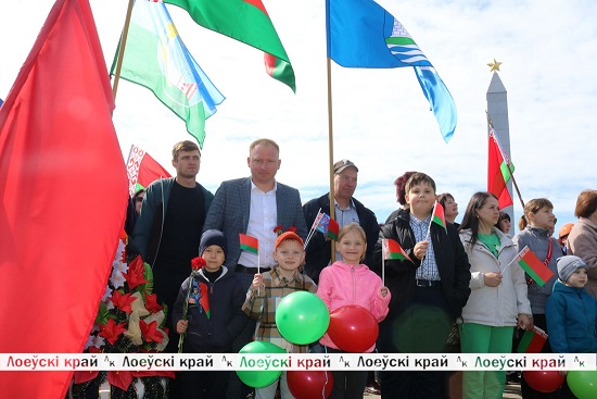 Праздничные мероприятия в горпоселке стартовали республиканской акцией «Беларусь помнит», в которой приняли участие более 500 человек. Традиционно колонну трудовых коллективов возглавило шествие юных лоевчан с портретами героев Великой Отечественной войны, трепетно хранящихся в семейных альбомах.
