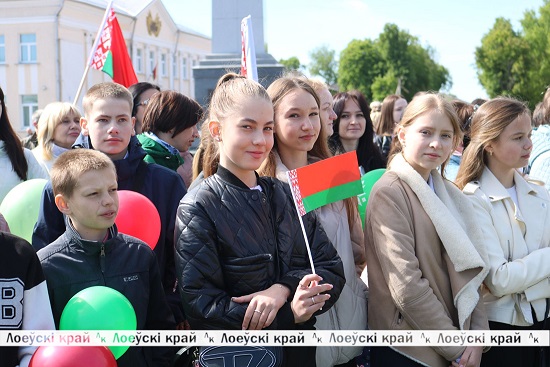 Ярко, торжественно, с улыбками, воздушными шарами, национальными символами и цветами лоевчане от мала до велика встретили всенародный праздник. Безусловно, этот день — дань уважения, благодарность миллионов потомков поколению победителей.
