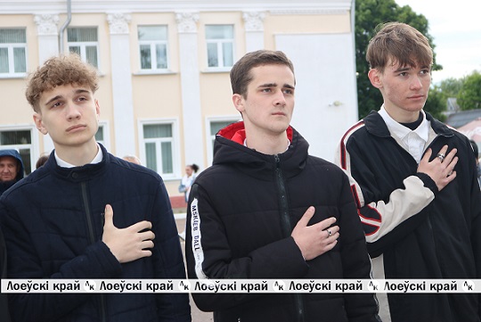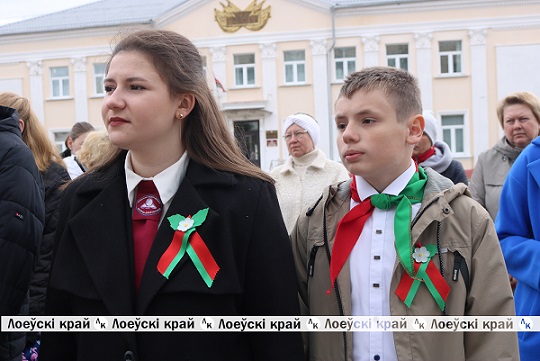 Праздничный ритуал чествования государственных символов нашей страны прошел на центральной площади Лоева, где собрались руководство района, депутатский корпус, представители общественных объединений, профсоюзов, трудовых коллективов, молодежь и учащиеся учреждений образования.
