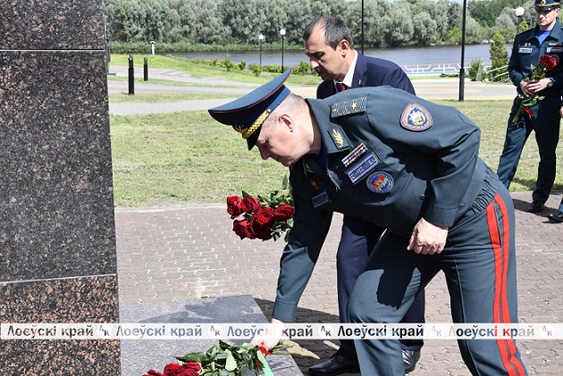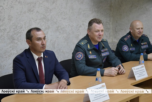 Завершением семинара стало посещение Лоевского районного отдела по  чрезвычайным  ситуациям, где Вадим Синявский ознакомился с историей отдела, его материально-технической частью и провел беседу с личным составом.