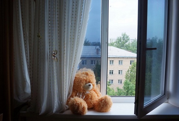 Установите на окна блокираторы, чтобы ребёнок не мог самостоятельно открыть его! Помните, что москитные сетки — это не препятствие, дети опираются на них и выпадают вместе с ними наружу!