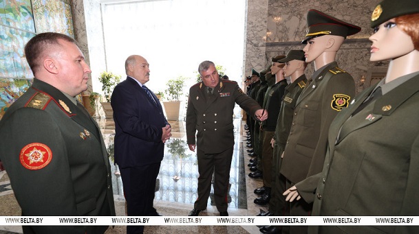 Президент Беларуси Александр Лукашенко перед заседанием Совета безопасности во Дворце Независимости ознакомился с перспективными образцами новых предметов формы одежды для военнослужащих, передает корреспондент БЕЛТА.