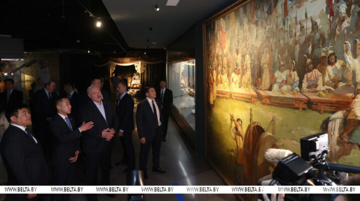 Президент Беларуси Александр Лукашенко в Улан-Баторе посетил Национальный музей Чингисхана, передает корреспондент БЕЛТА.