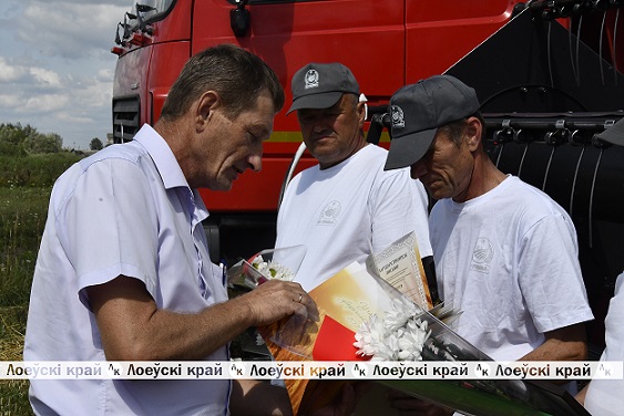 В адрес героев жатвы от гостей звучали пожелания крепкого здоровья, беспрепятственного проведения страды и большого намолота. Каждому были вручены благодарственные письма и денежная премия, а первым тысячникам ещё и сертификаты от Гомельского областного комитета Белорусского профсоюза работников местной промышленности и коммунально-бытовых предприятий.