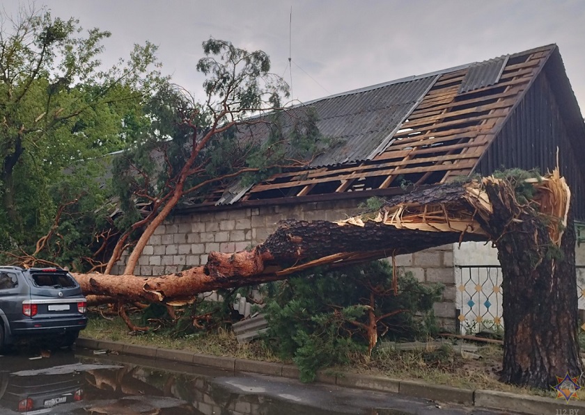 14 июля вследствие шквалистого ветра с зарегистрированной скоростью 29 м/с (метеостанция Гомель) в Гомельской области зафиксированы: 457 случаев повреждения кровель жилых домов и хозяйственных построек, 114 сельскохозяйственных зданий в 249 населенных пунктах 15 районов Гомельской области и Гомеле, сообщили в областном управлении МЧС.