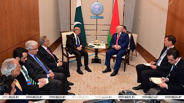 Президент Беларуси Александр Лукашенко в Астане на полях саммита Шанхайской организации сотрудничества встретился с премьер-министром Пакистана Шахбазом Шарифом, передает корреспондент БЕЛТА. Глава белорусского государства предложил доработать