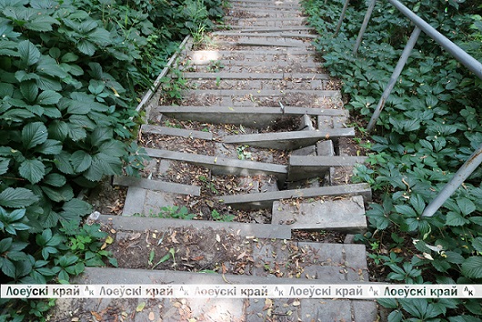 Территория возле спуска от парка к причалу на улице Акуционка постепенно превращается в заброшенное место. Ступеньки, ведущие к берегу, в некоторых местах и вовсе