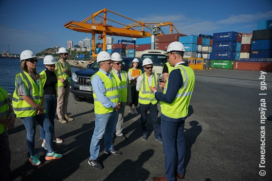Делегаты во главе с губернатором Иваном Крупко прошлись по основным локациям гигантского морского транспортного узла. Через этот порт проходят многие грузы России и стран Азии.