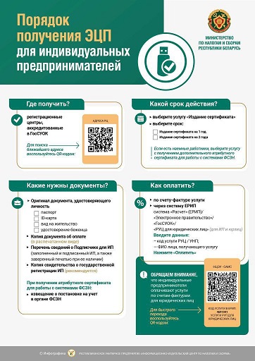 Инфографика Экономика и финансы 15.08.202415.08.2024 МНС НАПОМИНАЕТ О СПОСОБАХ ПОЛУЧЕНИЯ ЭЦП ИНДИВИДУАЛЬНЫМИ ПРЕДПРИНИМАТЕЛЯМИ Опубликовал: Лоевский край