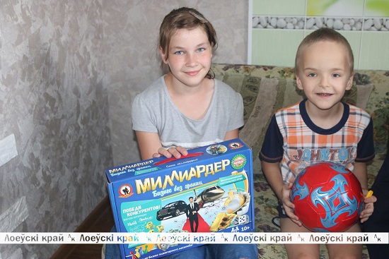Не остались без внимания и другие дети в семье. Насте и Руслану глава района подарил настольную игру и мяч.