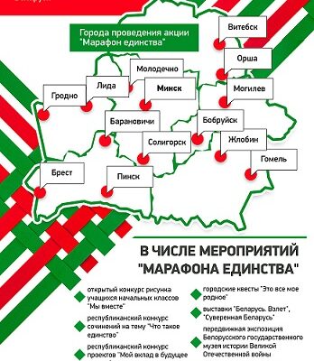 Кроме того, в первый день «Марафона» в Гомеле популярные белорусские блогеры и артисты побывают на экскурсии в ОАО «Коминтерн», посмотрят, как создаются комбайны на «Гомсельмаше», в Институте леса НАН Беларуси узнают, чем уникальны наши леса. И, конечно, прочувствуют историю города в Гомельском дворцово-парковом ансамбле. По словам организаторов, участниками «Марафона единства» предварительно станут восемь блогеров с общим охватом аудитории примерно в 13,8 млн человек.