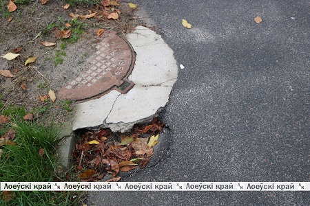 Еще одна опасность поджидает велосипедистов и пешеходов на ул. Ленина возле пешеходного перехода в районе рынка. На тротуаре около люка образовалась небольшая яма. Более того она присыпана опавшими листьями, поэтому сразу ее и не увидишь. Стоит оступиться — и травмы не избежать.