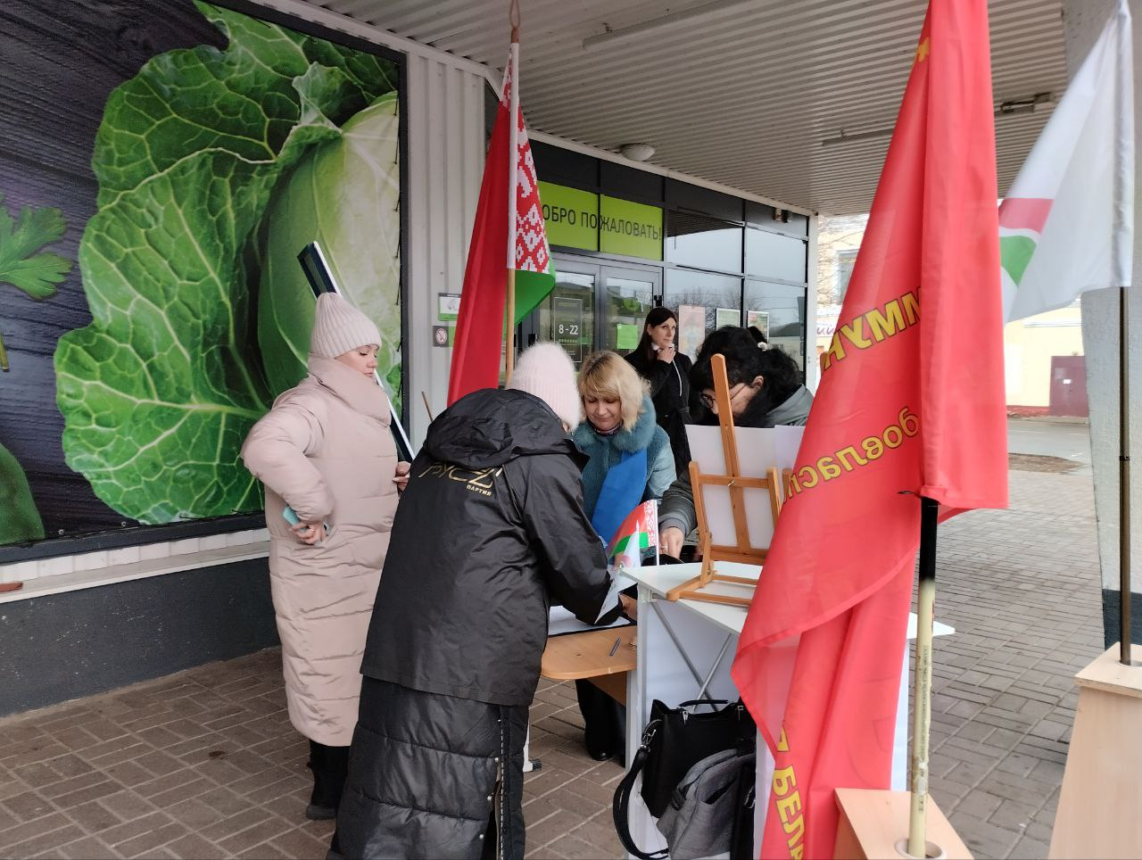 Сегодня инициативные группы работали возле магазина «Евроопт». Лоевчане с хорошим настроением массово приходят с паспортами, чтобы поставить подпись в поддержку кандидата, которому доверяют.