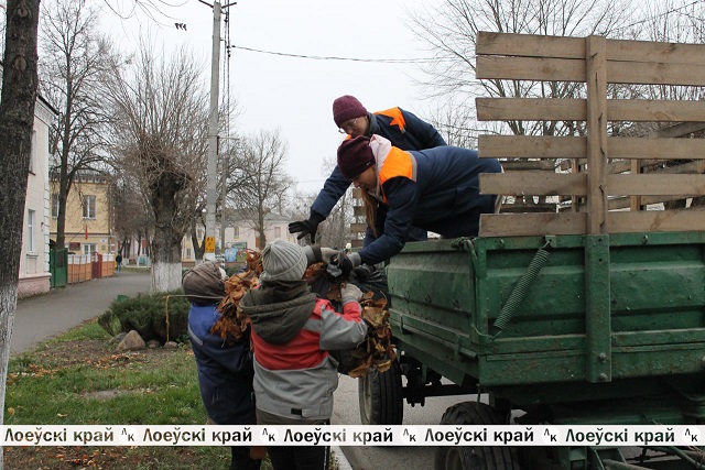 Работники райжилкомхоза «рулят» с самого утра. Воспользовавшись относительно тёплой и безветренной погодой, бригада зелёного строительства наводит порядок на улицах горпосёлка. Конечно, корреспонденты «ЛК» не могли не запечатлеть для истории главных «санитаров» райцентра.???