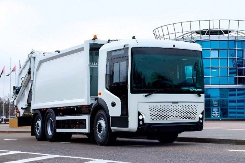 МАЗ выпустил новый электрический мусоровоз — грузовик на специальном шасси с низко посаженной кабиной. У автомобиля большая площадь остекления, в кабине предусмотрены места для четырех человек.