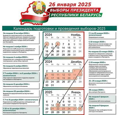 Утвержден план мероприятий по подготовке и проведению выборов Президента Беларуси. Даты назвали в ЦИК. Основной день голосования — 26 января 2025 года. Досрочное голосование