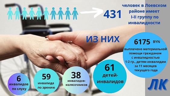 В ЛОЕВСКОМ РАЙОНЕ 431 ЧЕЛОВЕК ИМЕЕТ l-ll ГРУППУ ПО ИНВАЛИДНОСТИ