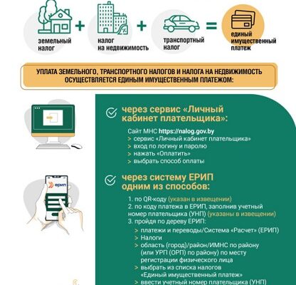 Инспекция Министерства по налогам и сборам по Гомельской области напоминает, что в этом году транспортный, земельный и налог на недвижимость уплачиваются единым платежом. Физическим
