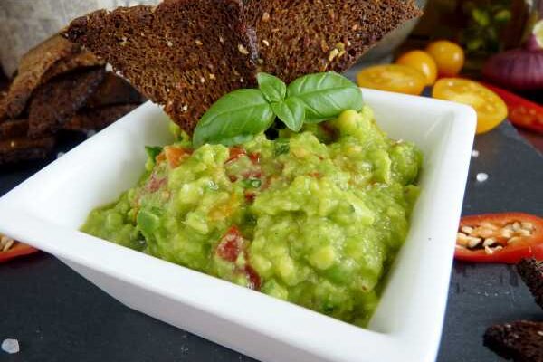Гуакамоле с зеленым базиликом и ржаными хлебцами