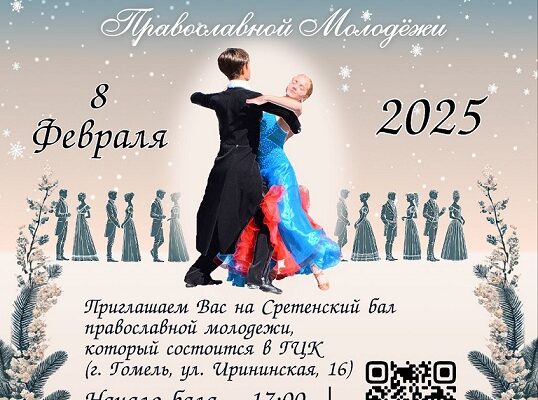 Молодежный отдел Гомельской епархии приглашает на Сретенский бал православной молодёжи, который пройдёт 8 февраля 2025 года в 17:00 по адресу: г. Гомель, ул. Ирининская,