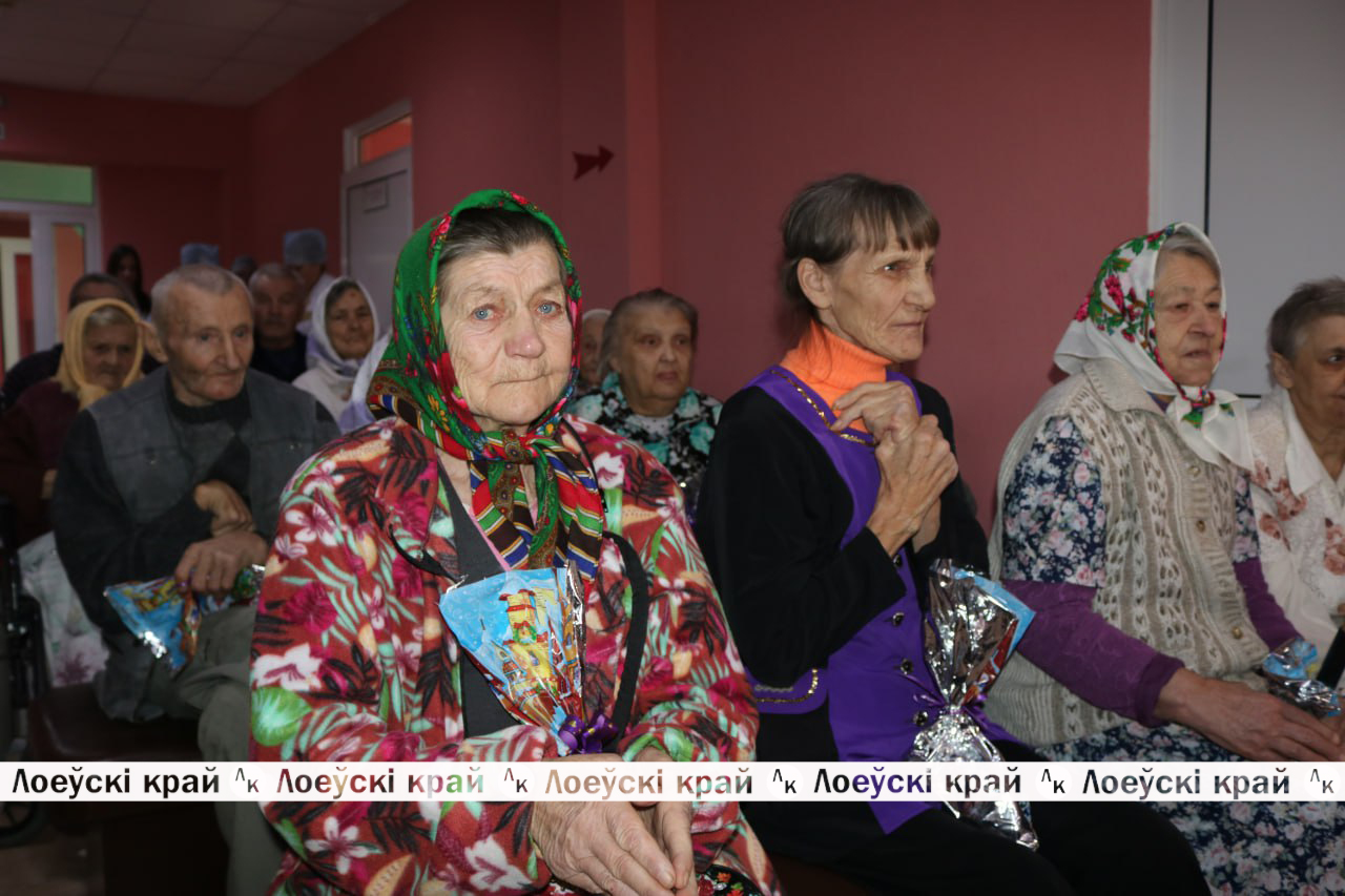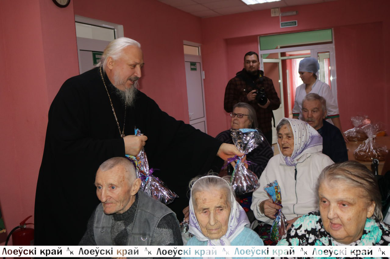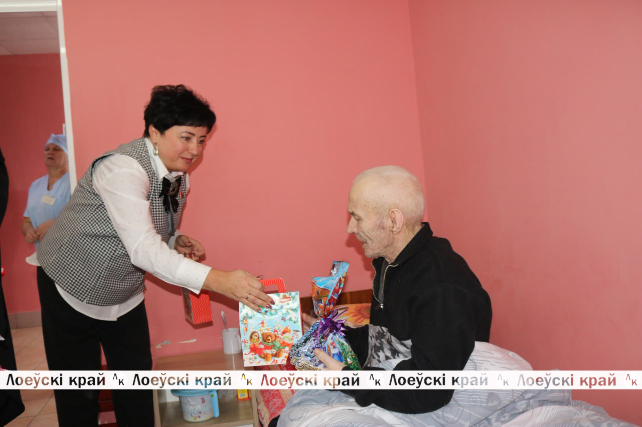 Член Совета Республики Национального собрания Республики Беларусь, председатель Гомельской областной организации Белорусского Общества Красного Креста Алла Смоляк и архиепископ Гомельский и Жлобинский Стефан передали учреждению средства гигиены и махровые полотенца. Каждый из пациентов получил сладкие подарки и угощения, а также искренние слова поддержки, которые так нужны пожилым людям, оказавшимся в силу жизненных обстоятельств на больничной койке. Гости поздравили от всей души и персонал БСУ за их нелегкий труд и сердечную теплоту.