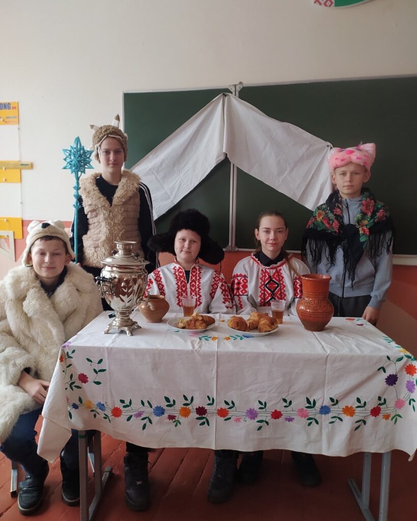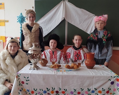 В этот же день для учащихся 7 «А» класса (на фото) прошёл праздник «Пришла Коляда, отворяй ворота». В начале ребята ознакомились с историей праздника, прослушав сообщение «Откуда пришла Коляда», а после представили себя в роли актёров и подготовили сценку «Спроси у дедушки». В этот день школьный класс превратился в настоящую театральную студию. Праздничные декорации, оригинальные колядные костюмы, знакомые мелодии окунули мальчишек и девчонок в атмосферу Рождества.