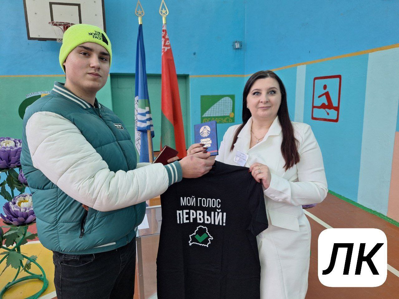 В кадре акция «Впервые голосующий». Молодые избиратели участка #2 не остались сегодня без подарков. Председатель комиссии Светлана Моторная и её помощники поздравили молодых лоевчан с праздником и вручили памятные подарки. Уверены, юные лоевчане будут с гордостью носить майки с логотипом «Мой голос первый»