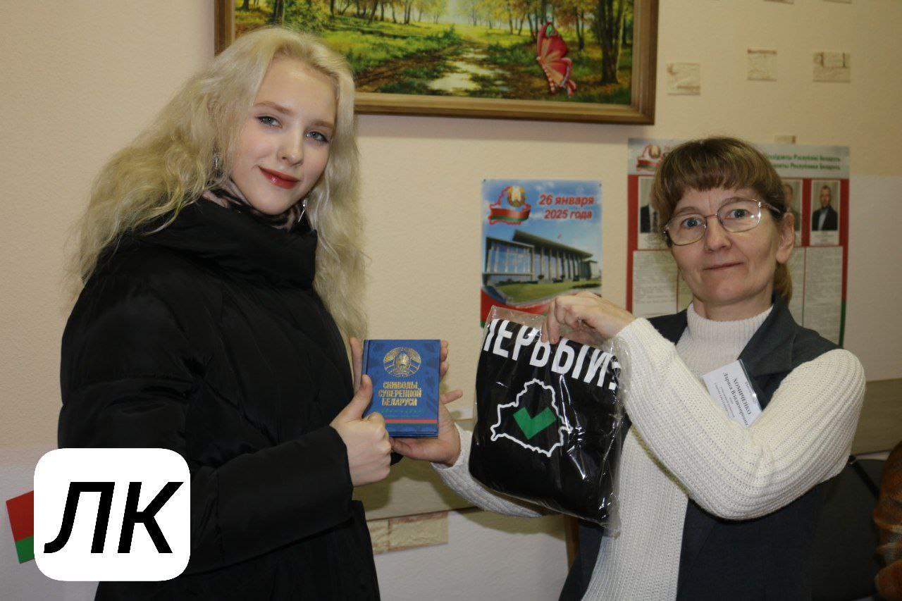 На избирательных участках Лоевщины продолжается акция для молодых, впервые голосующих, избирателей. В кадре выпускница Лоевщины, студентка Гомельского колледжа искусств имени Н.Ф. Соколовского Дарья Потапенко. Сессия за плечами, каникулы в разгаре, осталось выполнить гражданский долг. С этой почётной миссией девушка не стала затягивать. Члены комиссии поздравили юную лоевчанку и вручили ей памятные подарки: подарочное издание «Символы суверенной Беларуси» и майку с логотипом «Мой голос первый».